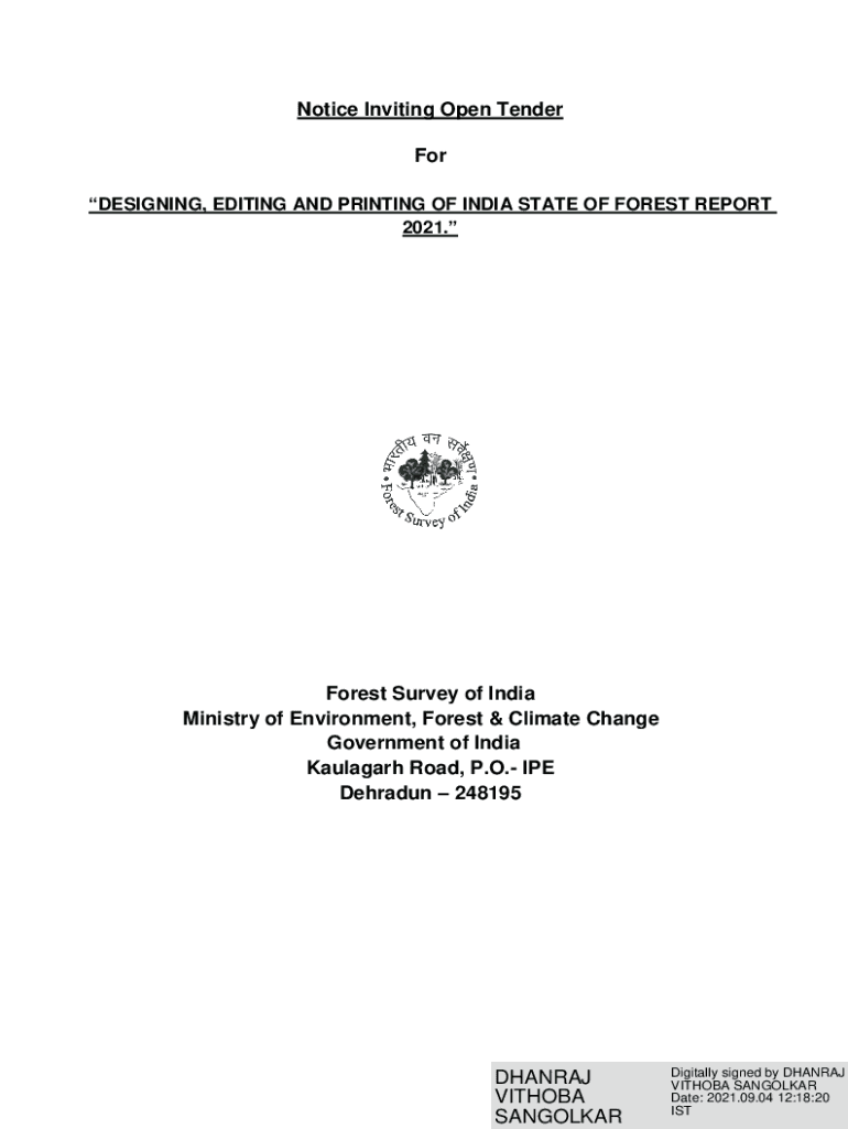 Get the free Notice Inviting Open Tender For - Forest Survey of India