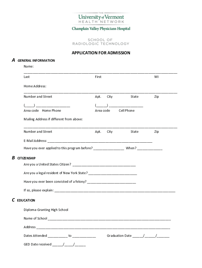APPLICATION FOR ADMISSIONAGENERAL INFORMATION