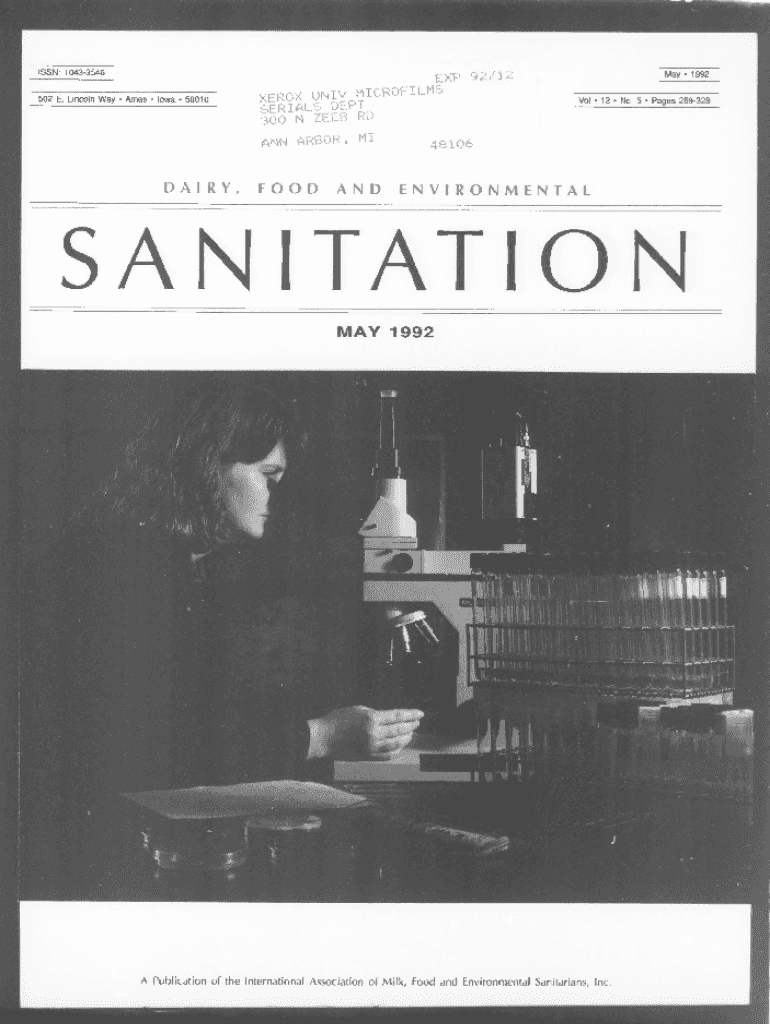 ISSN: 10433546EXP502 E. Lincoln Way Ames Iowa 50010ANN ARBOR, MIDAIR, Foodpanda 199292/12XEROX UNIV MICROFILMS SERIALS DEPT 300 N ZEE Rival 12 No. 5 Pages 26932848106ENVIRONMENTALSANITATION MAY 1992A