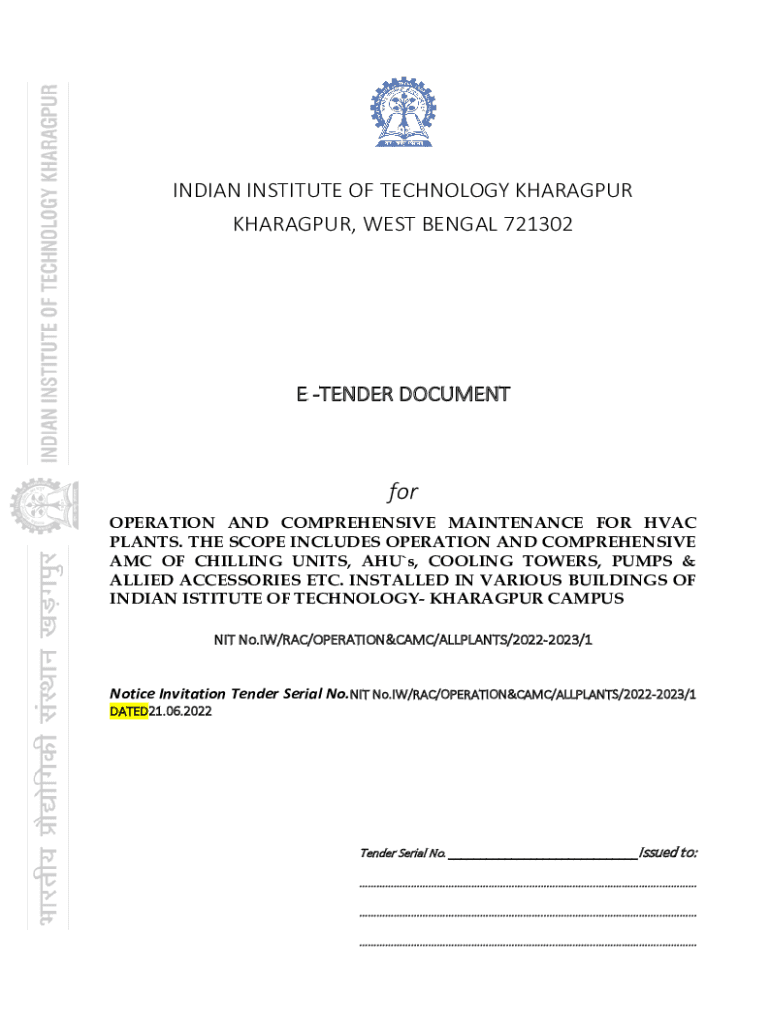 Get the free TENDER DOCUMENT - IIT Kharagpur