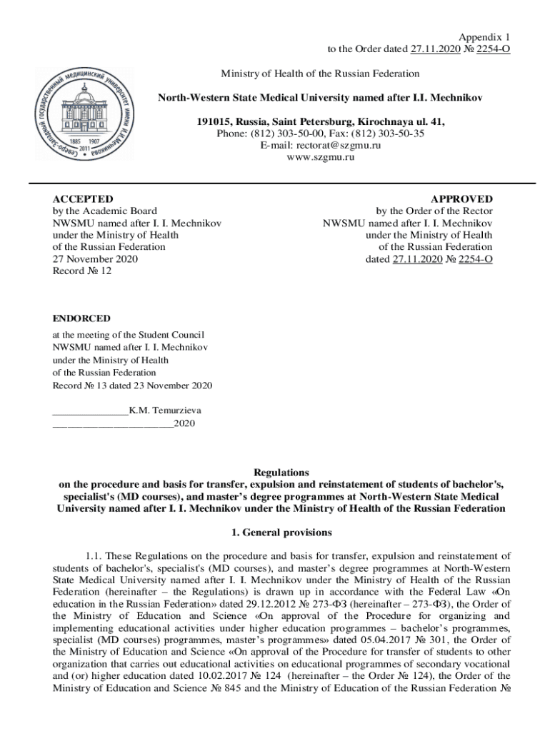 Students and faculty members of the north-western state medical university are required to file necessary documents and reports.