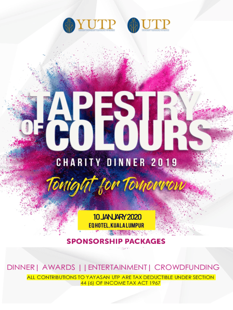 10 JANUARY 2020DINNER| AWARDS ||ENTERTAINMENT| CROWDFUNDING ALL CONTRIBUTIONS TO CATALAN UTP ARE TAX DEDUCTIBLE UNDER SECTION 44 (6) OF INCOME TAX ACT 1967 3 Premier VIP Seating (Diamond Table) 3