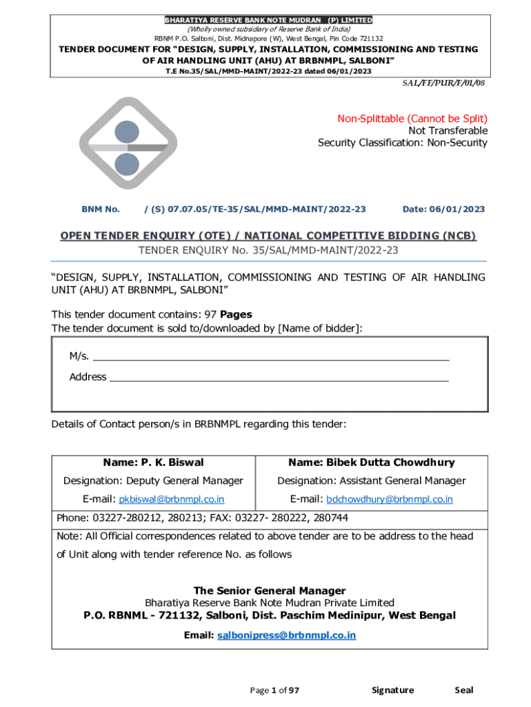 Get the free Non-Security OPEN TENDER ENQUIRY - brbnmpl