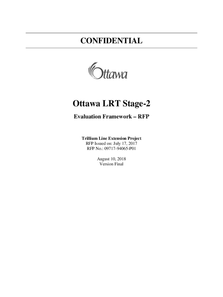 CONFIDENTIAL Ottawa ART Stage2 Evaluation Framework Trillium Line Extension Project RFP Issued on: July 17, 2017, RFP No.: 0971794065P01 August 10, 2018, Version Inflatable OF CONTENTS SECTION 1 BACKGROUND