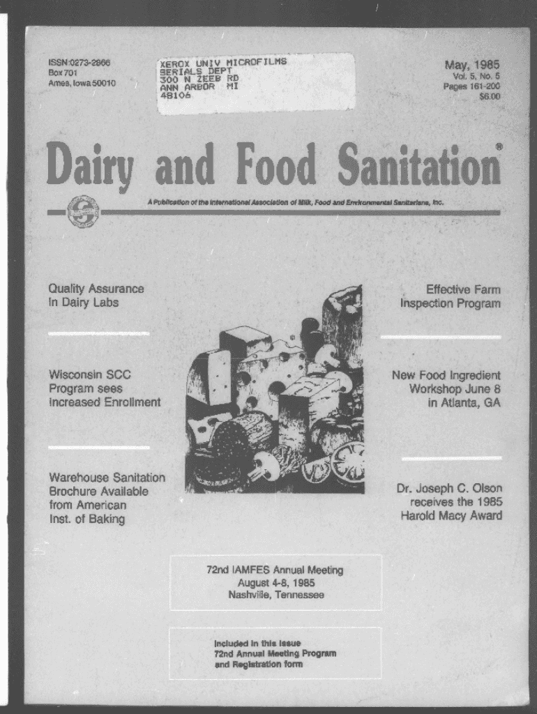 /ISSN:02732866 80×701 Ames. Iowa 50010XEROX UNIV MICROFILMS SERIALS DEPTH 300 N SEES RD ANN ARBOR MI 48106Quality Assurance In Dairy LabsEffective Farm Inspection Program Wisconsin SCC Program sees