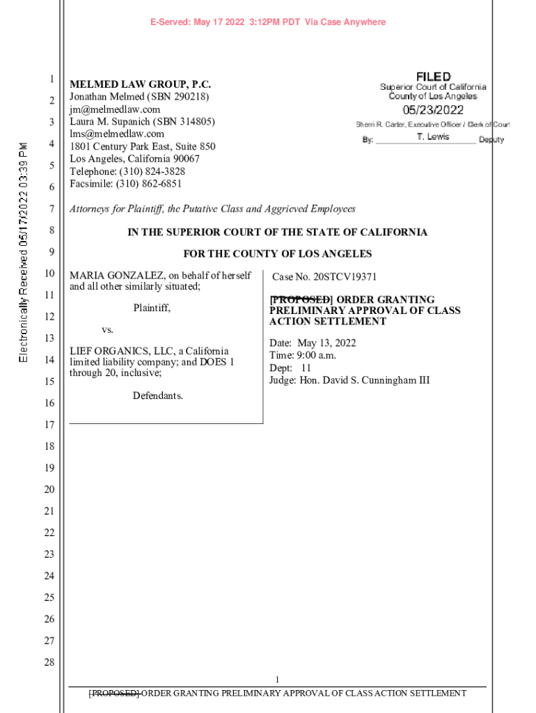 Served: May 17, 2022 3:12PM PDT Via Case Anywhere16MELMED LAW GROUP, P.C. Jonathan Melted (SON 290218) jm@melmedlaw.com Laura M. Spanish (SON 314805) lms@melmedlaw.com 1801 Century Park East, Suite