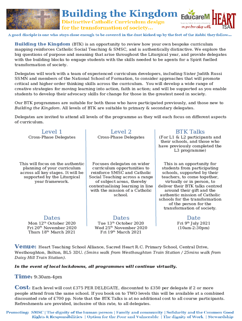 The Role of the Teacher, Catholic Social Teaching ... - UK Essays is a Word document which can be completed and signed for certain reasons. In that case, it is furnished to the exact addressee to provide specific details and data. The completion and signing is available or with a suitable service like PDFfiller. Such services help to send in any PDF or Word file without printing them out. It also lets you edit its appearance for your requirements and put a legal digital signature. Once done, the user sends the Role of the Teacher, Catholic Social Teaching ... - UK Essays to the respective recipient or several recipients by mail and even fax. PDFfiller is known for a feature and options that make your document of MS Word extension printable. It includes various settings for printing out appearance. It does no matter how you'll send a form after filling it out - physically or by email - it will always look neat and clear. To not to create a new document from the beginning again and again, make the original file into a template. After that, you will have an editable sample.