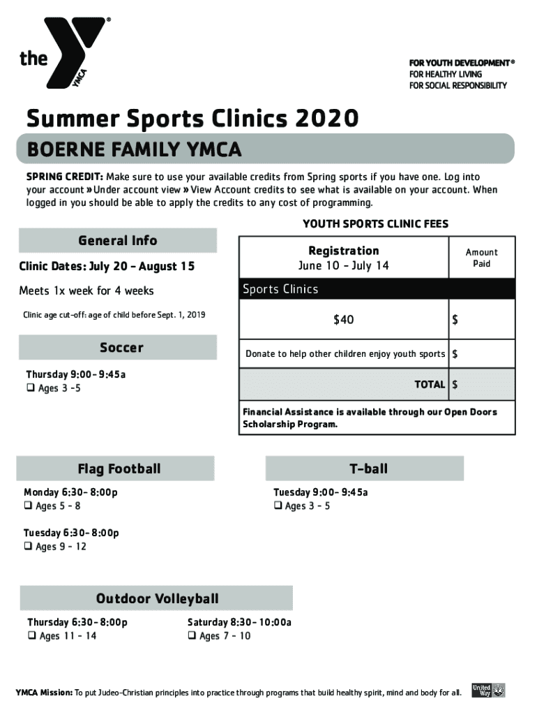 Summer Sports Clinics 2020 BORNE FAMILY MEASURING CREDIT: Make sure to use your available credits from Spring sports if you have one. Log into your account Under account view Account credits to see