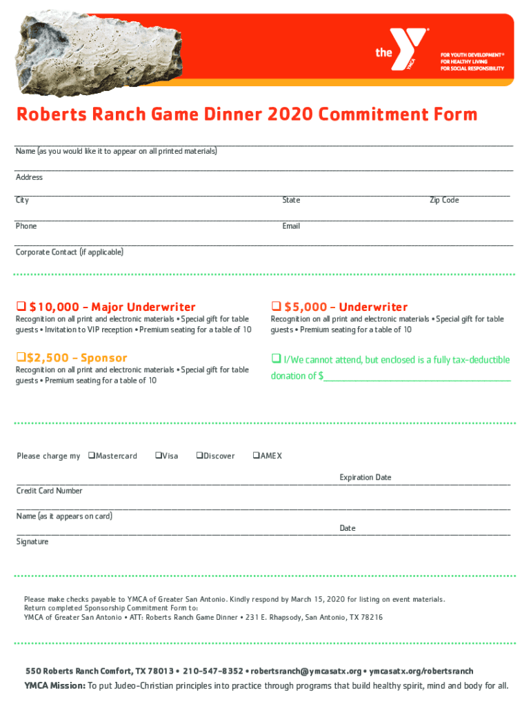 Roberts Ranch Game Dinner 2020 Commitment Form