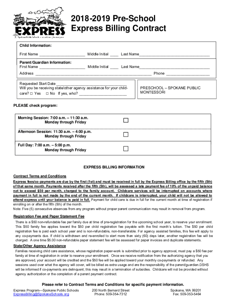 Get the free 2018-2019 Pre-School Express Billing Contract - Spokane Public ...