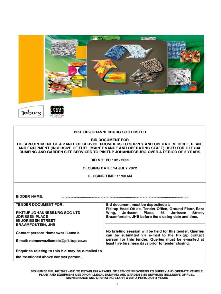 Get the free PIKITUP JOHANNESBURG SOC LIMITED ... - eTenders Portal