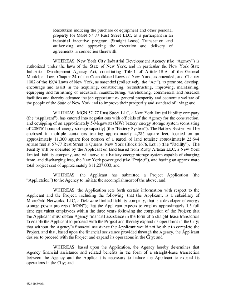 Resolution inducing the purchase of equipment and other personal property for MAN 5777 Rust Street LLC, as a participant in an industrial incentive program (Straightedge) Transaction and authorizing