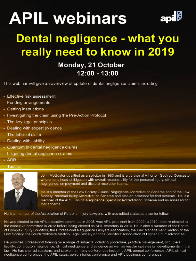 Get the free Dental Negligence Claims - An Introductory Guide - Webinar