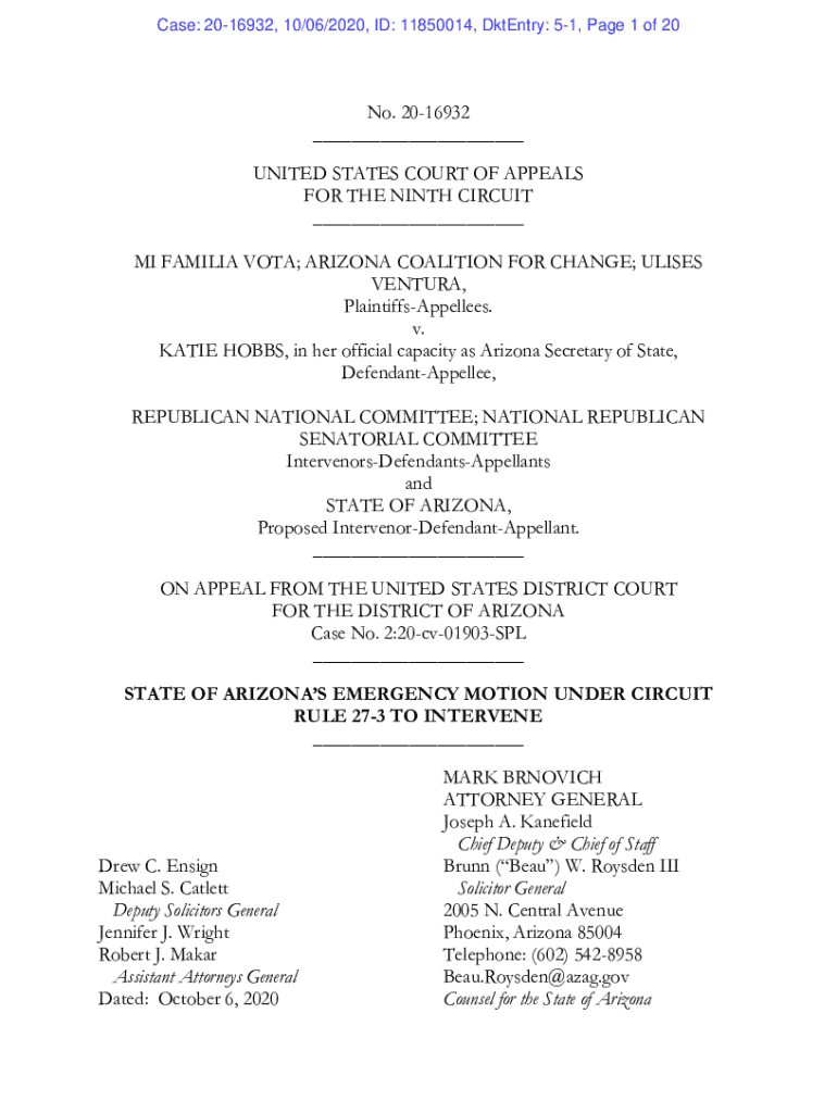 MI FAMILIAR VOTE; ARIZONA COALITION FOR CHANGE; LIES