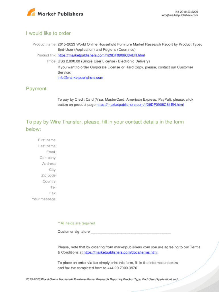 Online Retail Furniture Market is not the form you're looking for?Search for another form here.