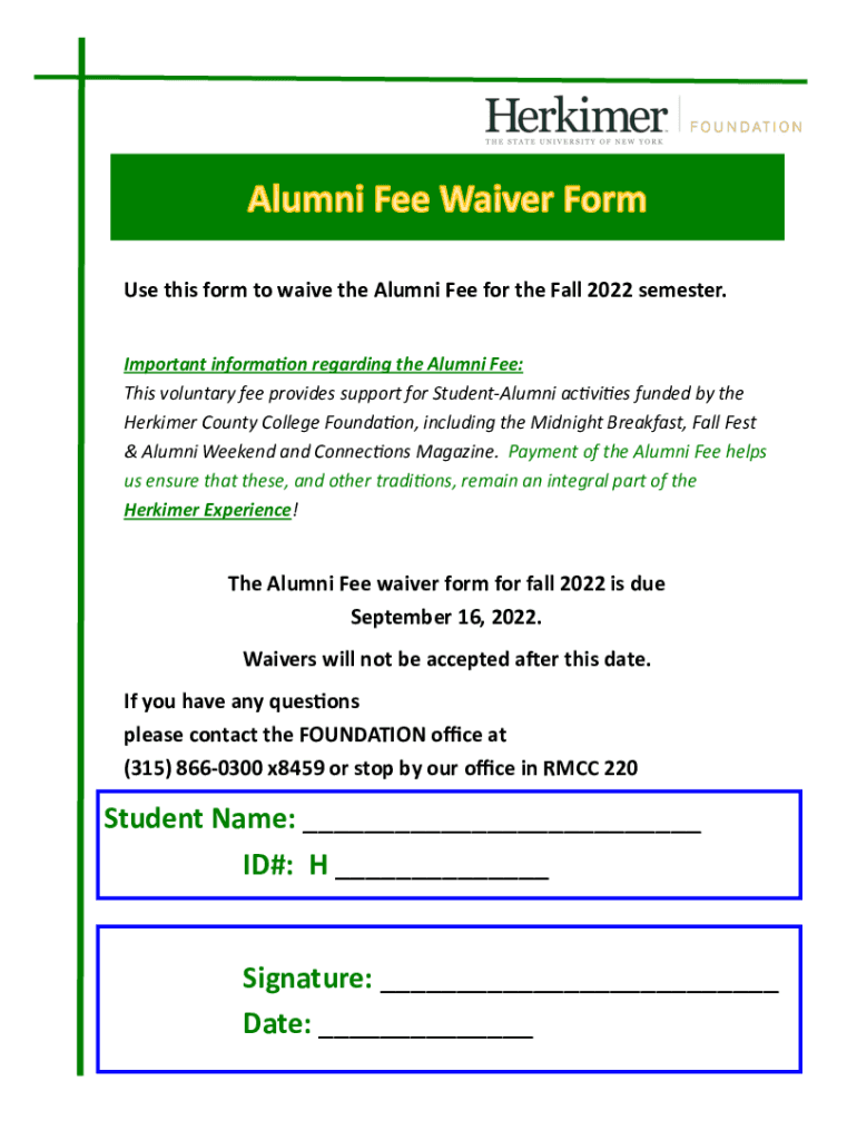 Use this form to waive the Alumni Fee for the Fall 2022 semester. Important information regarding the Alumni Fee: This voluntary fee provides support for StudentAlumni activities funded by the Perkier