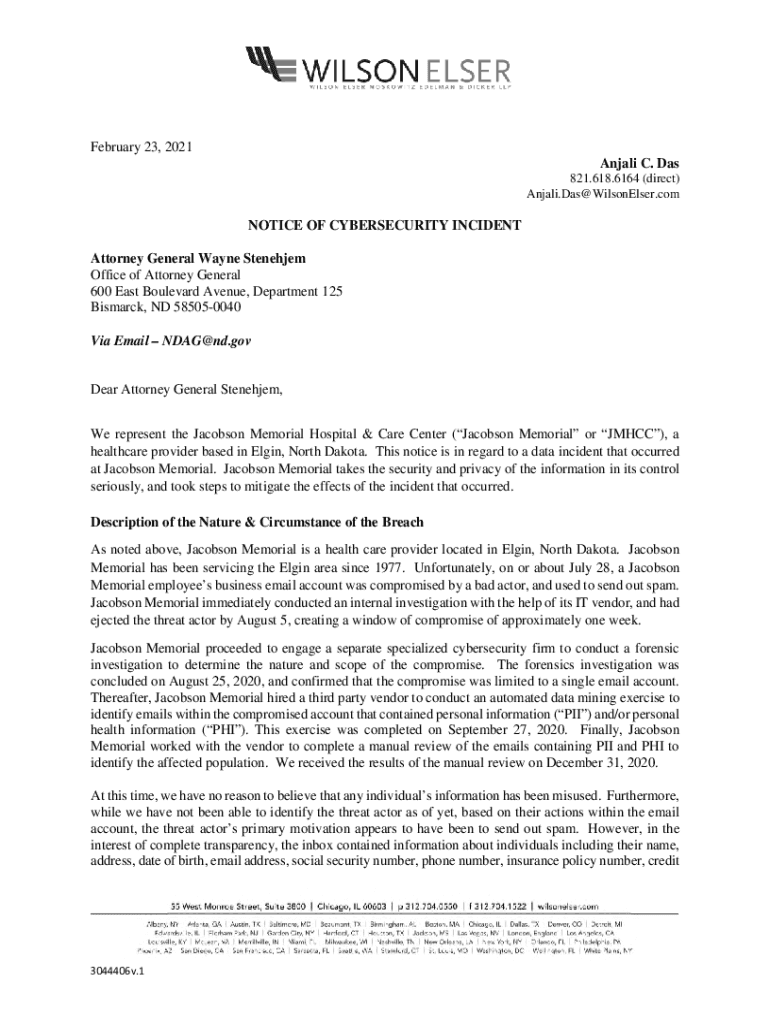 Get the free notice of cybersecurity incident - ND Attorney General