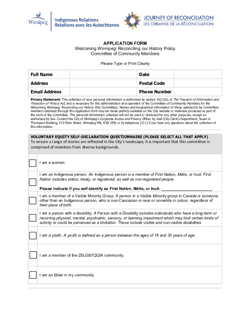 Get the free APPLICATION FORM Welcoming Winnipeg: Reconciling our ...