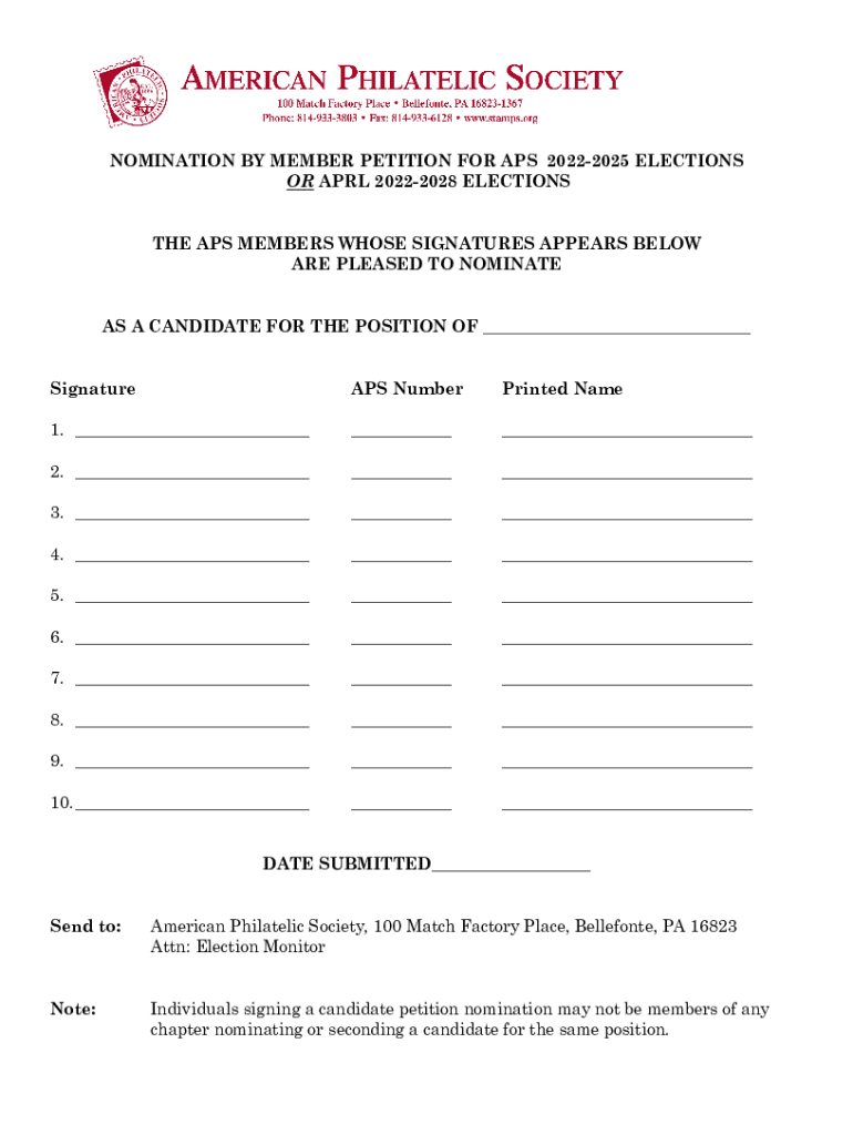 Get the free NOMINATION BY MEMBER PETITION FOR APS 2022-2025 ELECTIONS