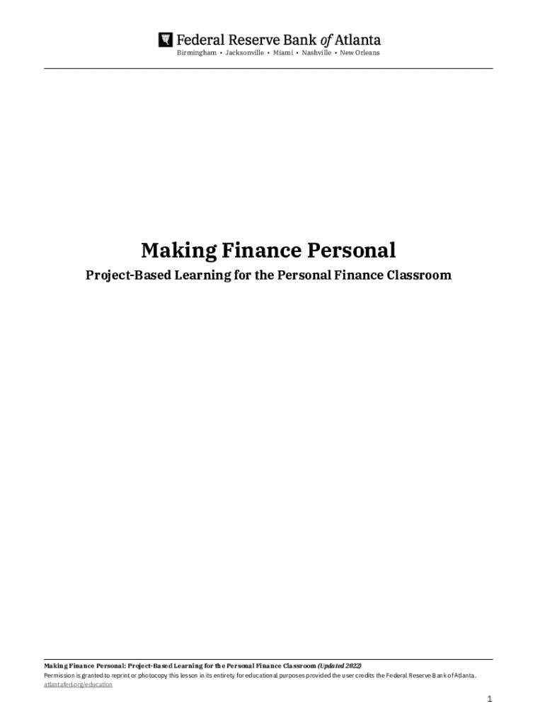 Birmingham Jacksonville Miami Nashville New OrleansMaking Finance Personal Projected Learning for the Personal Finance ClassroomMaking Finance Personal: Projected Learning for the Personal Finance