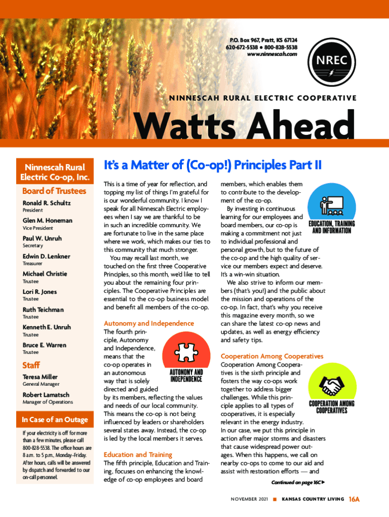 www.ninnescah.comN I N N E S C A H R U R A L E L E C T R I C C O O P E R AT I VE Watts Ahead