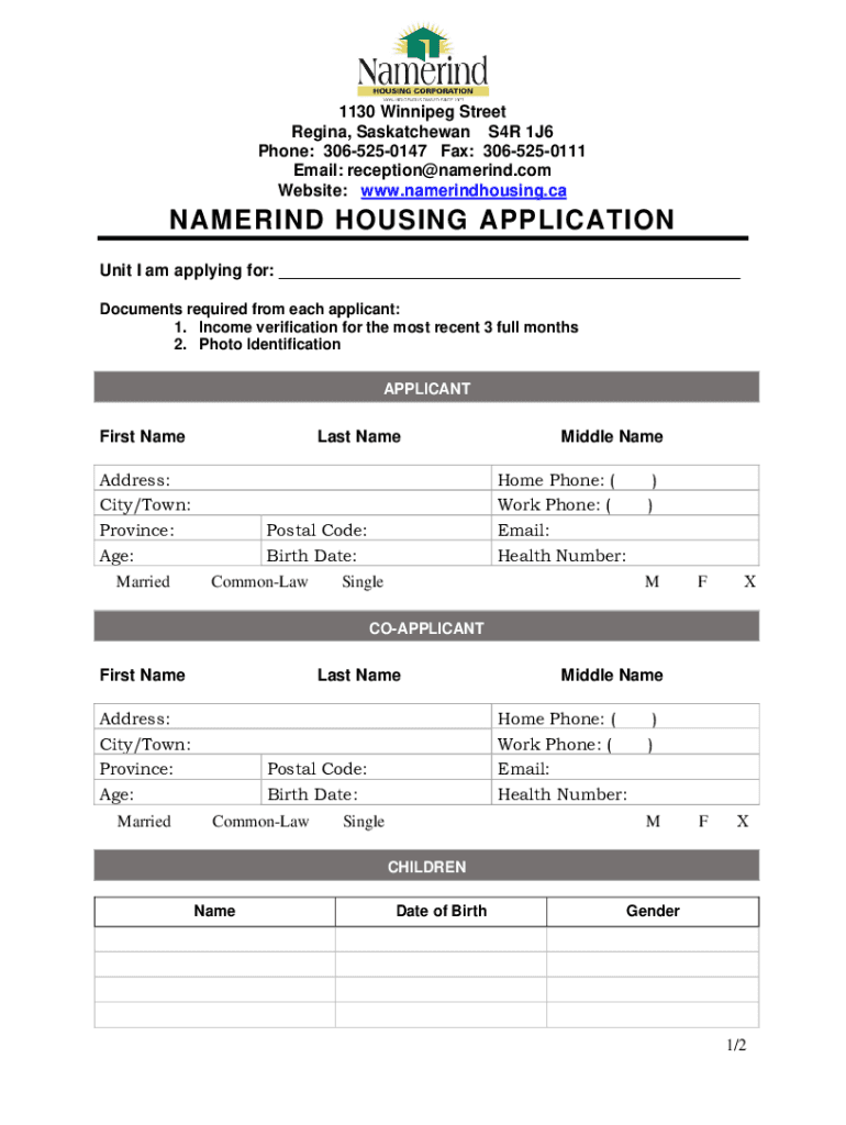 Get the free Namerind Housing Corporation - 1130 Winnipeg St, Regina, SK