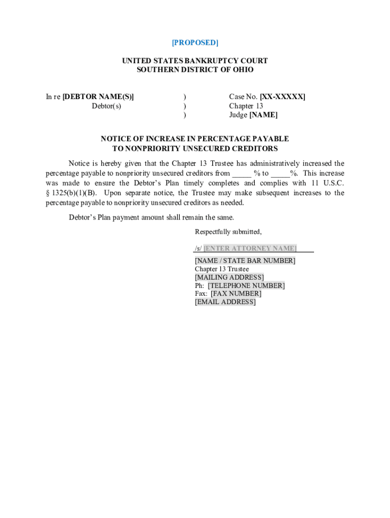 Judge [NAME]NOTICE OF INCREASE IN PERCENTAGE PAYABLE