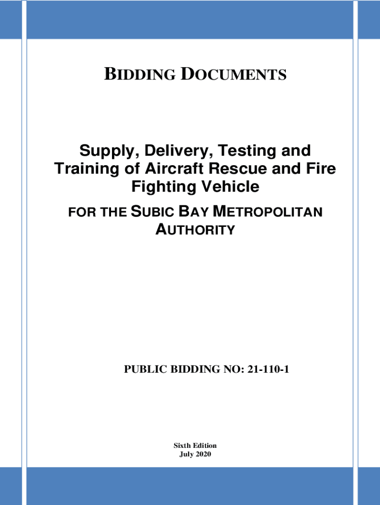 BIDDING DOCUMENTSSupply, Delivery, Testing and Training of Aircraft Rescue and Fire Fighting Vehicle FOR THE CUBIC BAY METROPOLITAN AUTHORITYPUBLIC BIDDING NO: 211101Sixth Edition July 2020 1Table