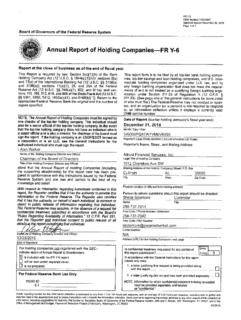 Get the free NOTE; The Annual Report of Holding Companies must be signed by