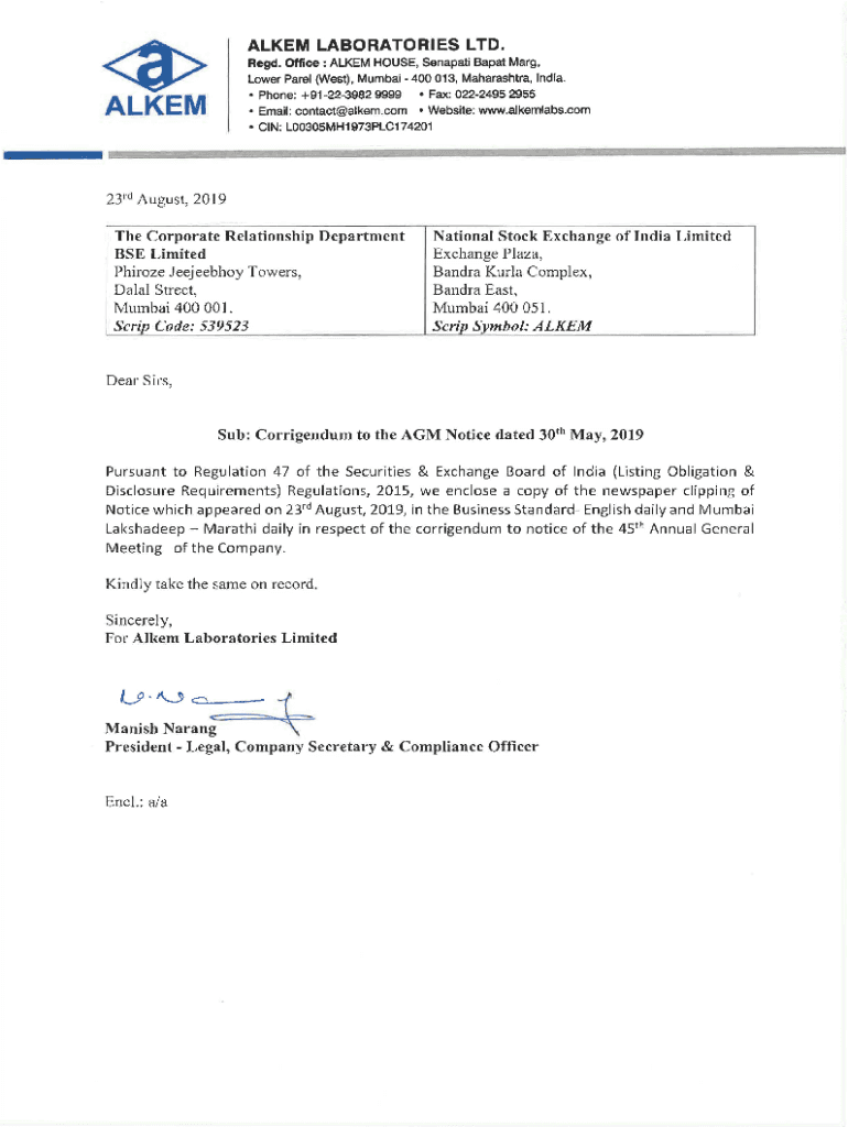 Alkem Laboratories is required to file its IPO basis with the regulatory authorities and stock exchanges as per the guidelines.