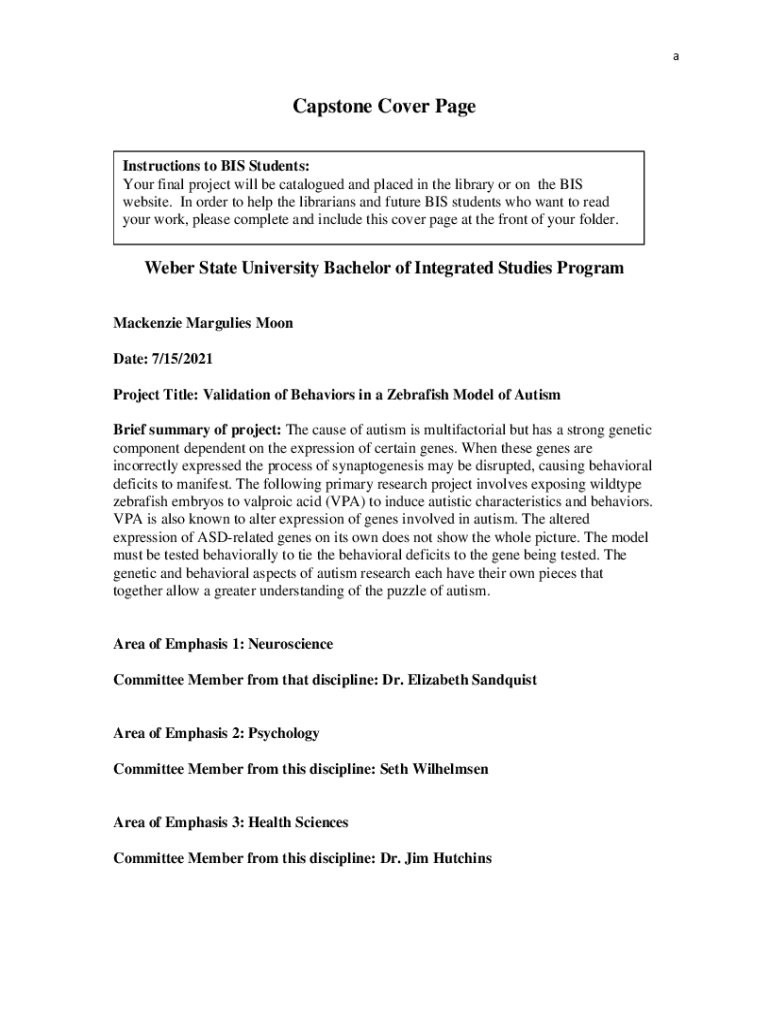 Capstone Cover Page Instructions to BIS Students: Your final project will be cataloged and placed in the library or on the BIS website. In order to help the librarians and future BIS students who