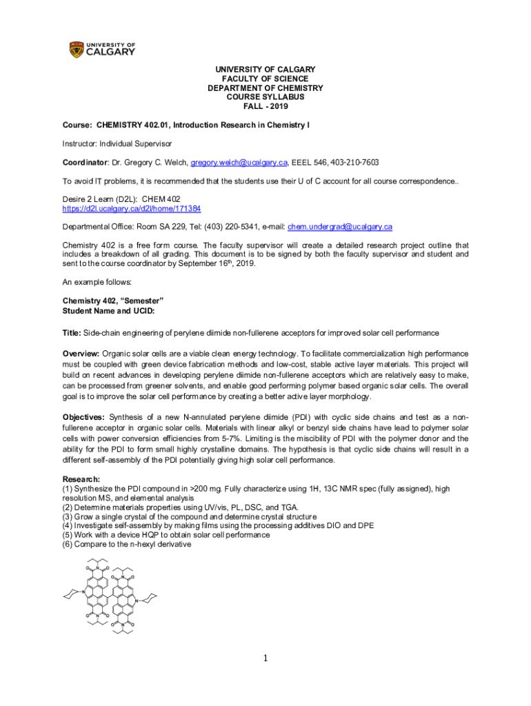 Get the free F19 CHEM 402 Syllabus (Welch) - University of Calgary - contacts ucalgary