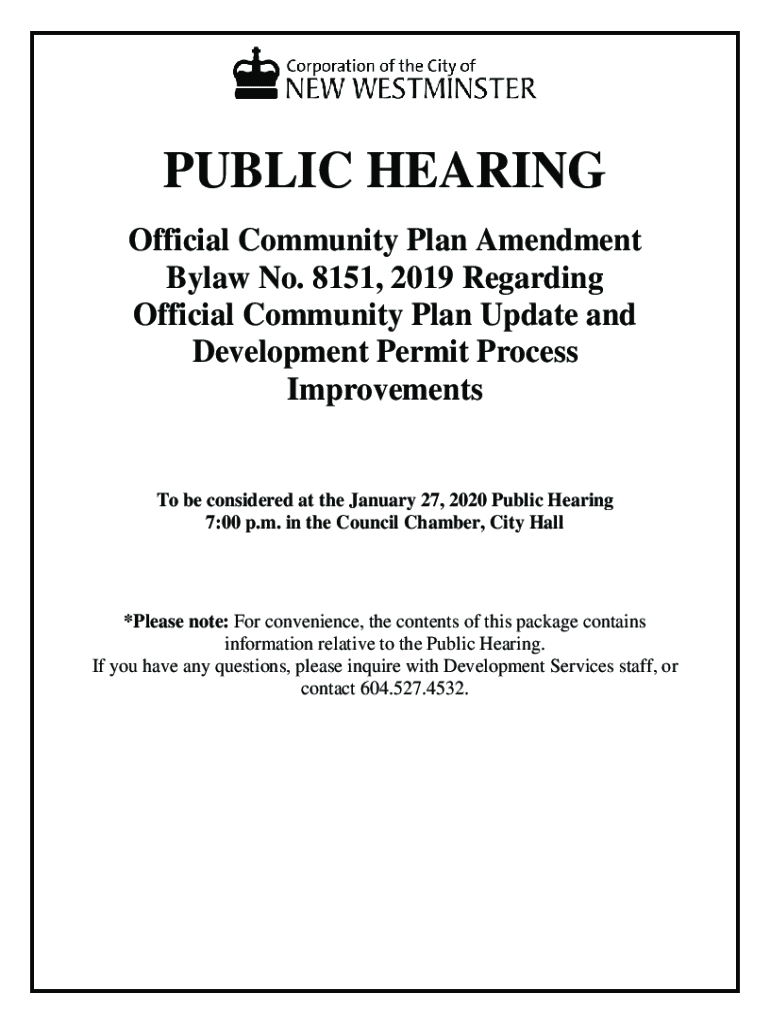 PUBLIC HEARING Official Community Plan Amendment Bylaw No. 8151, 2019 Regarding Official Community Plan Update and Development Permit Process Improvements be considered at the January 27, 2020, Public
