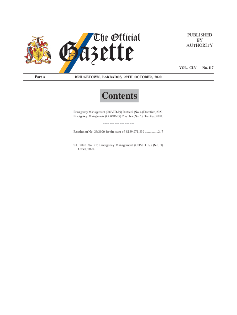 Part BRIDGETOWN, BARBADOS, 29TH OCTOBER, 2020Contents