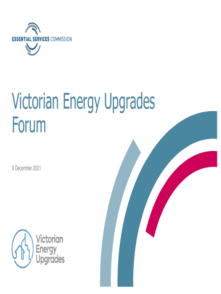 Victorian Energy Upgrades Forum 9 December 2021Victorian Energy Upgrades Forum 9 December 2021Welcome Kate Sons Chairperson, Essential Services Commission Victorian Energy Upgrades Forum 9 December