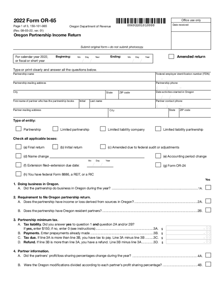 Date received00692201010000Oregon Department of Revenue Oregon Partnership Income ReturnSubmit original