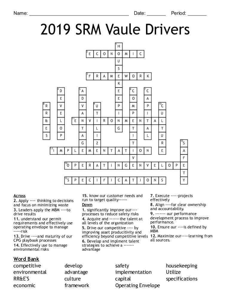 Name: ___ Date: ___ Period: ___2019 SRM Value Drivers 1 2ECONH OMICRON S 3FRAMEKK 45D E8RVREA D 9V A 11AUPMPTIPIEOTLSPA GMPLEVMCOLIN7CE&13E6EIRONMNTCU ALTATIILUZTEGE10NTATI12R ONEAL 14OPERATINGESF