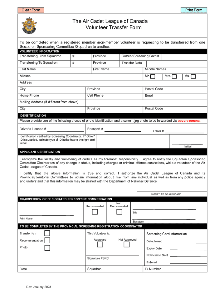 Get the free Volunteer Transfer Form - Air Cadet League of Canada