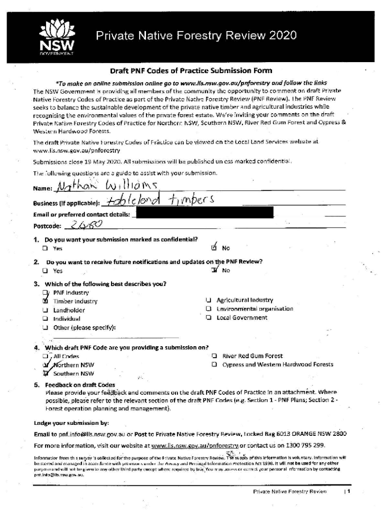 Get the free Draft Submission on Private Native Forestry draft Codes of ...