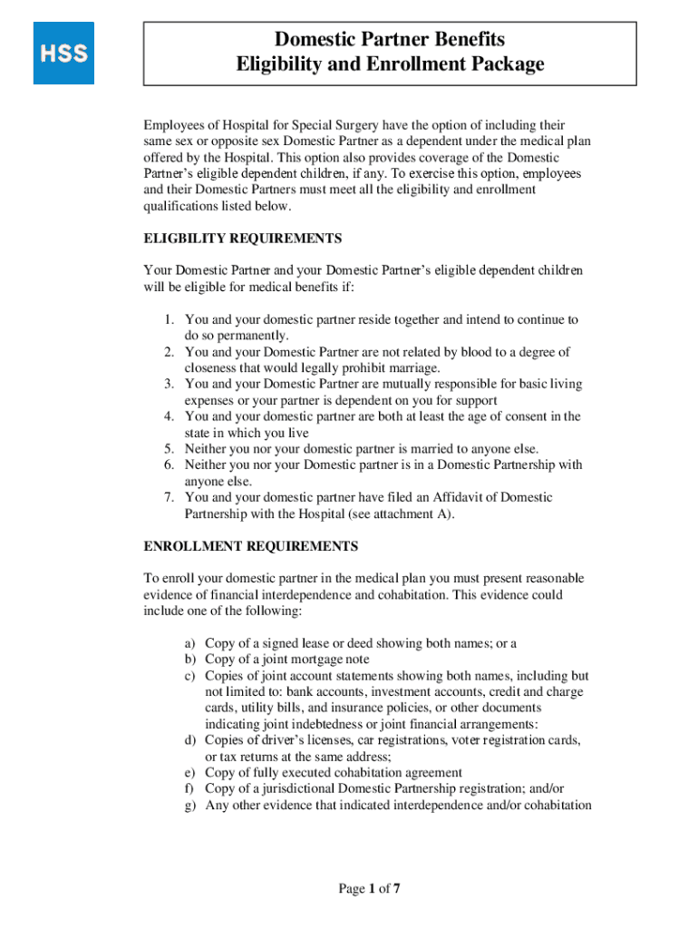 Domestic Partner Benefits Eligibility and Enrollment Package Employees of Hospital for Special Surgery have the option of including their same-sex or opposite sex Domestic Partner as a dependent under