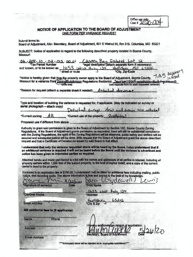 Get the free Variance Application And Notice of Appeal To The Board of ...
