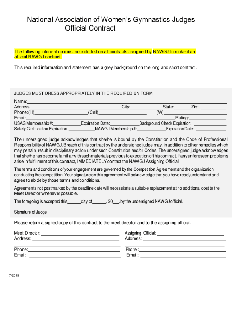 Get the free National Association of Women's Gymnastics Judges Official Contract