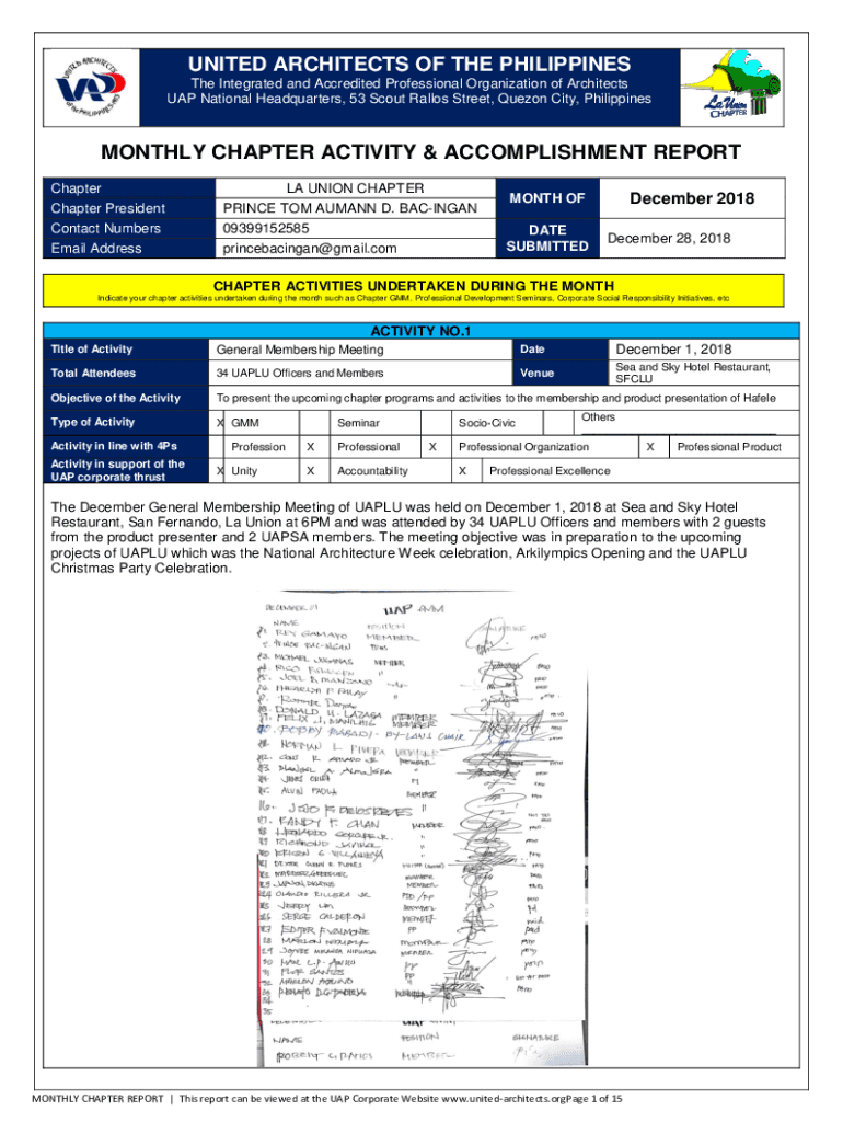 UNITED ARCHITECTS OF THE PHILIPPINES The Integrated and Accredited Professional Organization of Architects UAP National Headquarters, 53 Scout Allow Street, Quezon City, PhilippinesMONTHLY CHAPTER