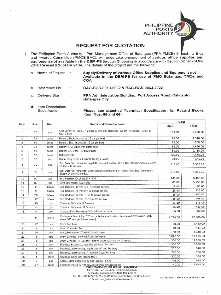 Get the free Price Quotation Form - Philippine Ports Authority