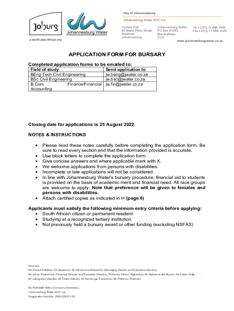 Fill out your application form for bursary online with pdfFiller!