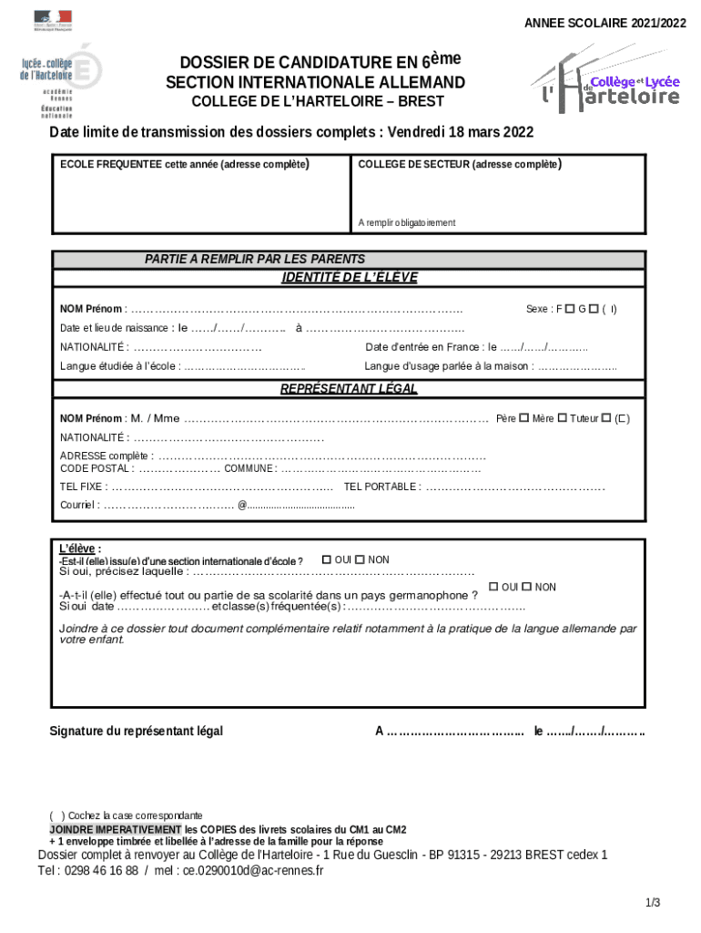 Obtenir le gratuit International Section Application - Sainte Anne Brest