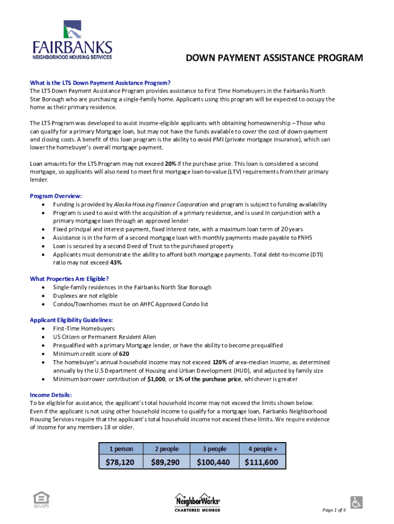 DOWNPAYMENTASSISTANCEPROGRAMWhatistheLTSDownPaymentAssistanceProgram? TheLTSDownPaymentAssistanceProgramprovidesassistancetoFirstTimeHomebuyersintheFairbanksNorth StarBoroughwhoarepurchasingasinglefamilyhome.