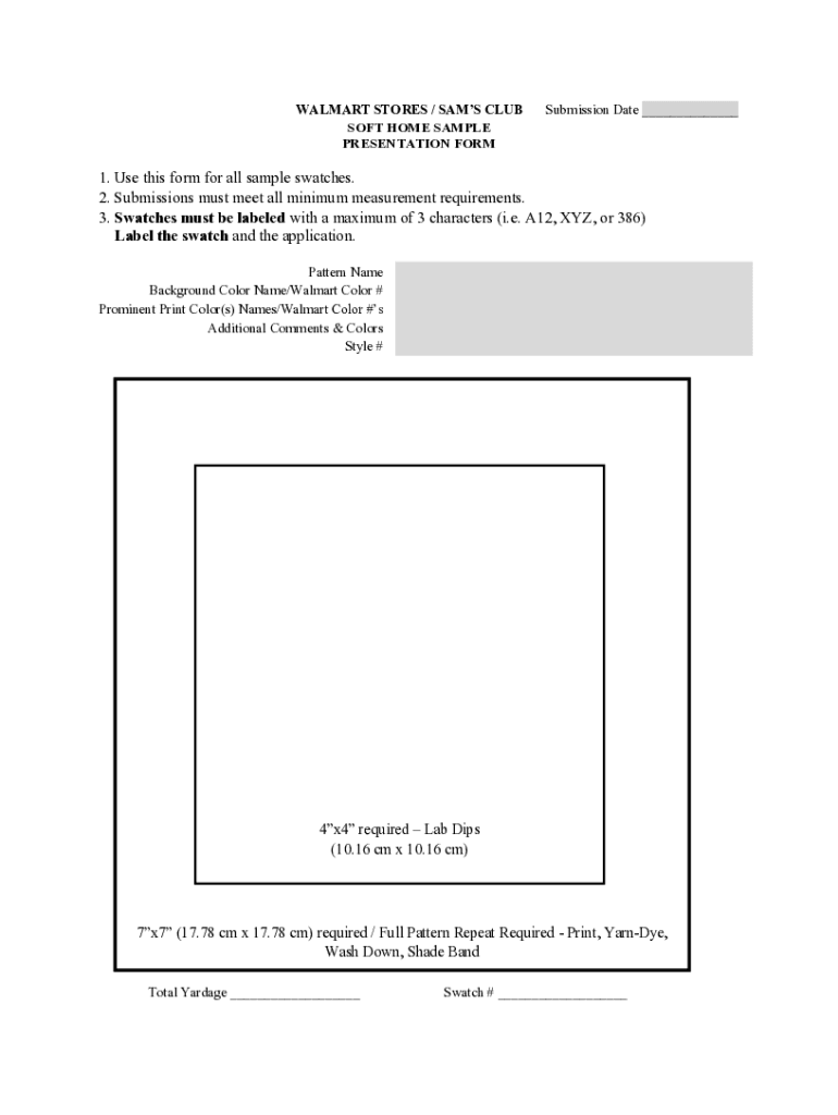 Sample Presentation Form Notes and Instructions Note: If the application and physical swatches are not properly labeled, swatches will be rejected and resubmission will be required. See below for