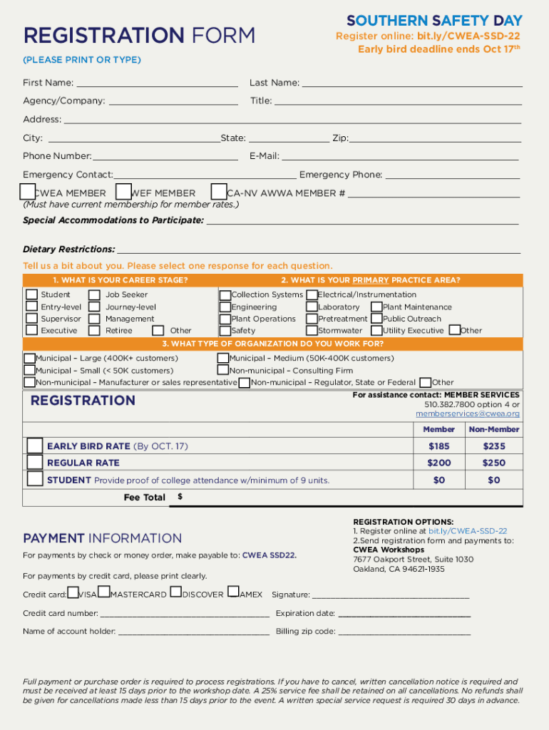 SOUTHERN SAFETY DAY26 SOUTHERN SAFETY EVENT INFOHello Southern California! For the first time in a long time, the famous Northern Safety Day is heading to sunny Local. DATE WEDNESDAY, OCT. 26, 2022CWEA