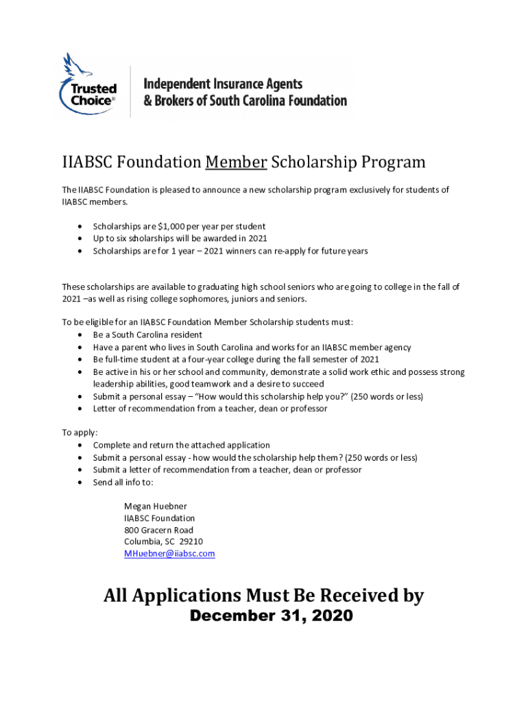 IIA BSC Foundation Member Scholarship Program TheIIABSCFoundationispleasedtoannounceanewscholarshipprogramexclusivelyforstudentsof IIABSCmembers. Scholarshipsare$1,000peryearperstudent Upton scholarships